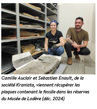 Le Musée de Lodève a confié le dégagement du fossile à la société Kraniata spécialiste de la préparation et l’articulation de squelettes d’animaux actuels et fossiles, située dans la Creuse.