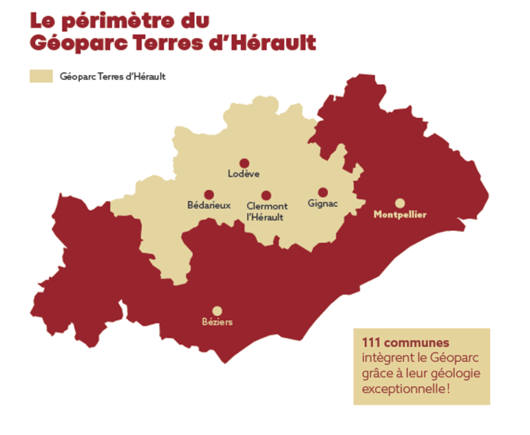 Le Géoparc Terres d’Hérault couvre 111 communes et plus de 2 000 km², entre le Lodévois, le Clermontais, la vallée de l’Hérault, le Grand Orb et plusieurs territoires voisins.