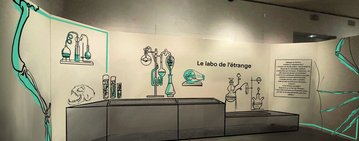 Tous les jours de l’exposition, venez jouer en famille dans les deux salles dédiées à la création et l’expérimentation. Imaginer, dessiner, construire... Créez votre chimère et décrivez-la à la façon d’un naturaliste.